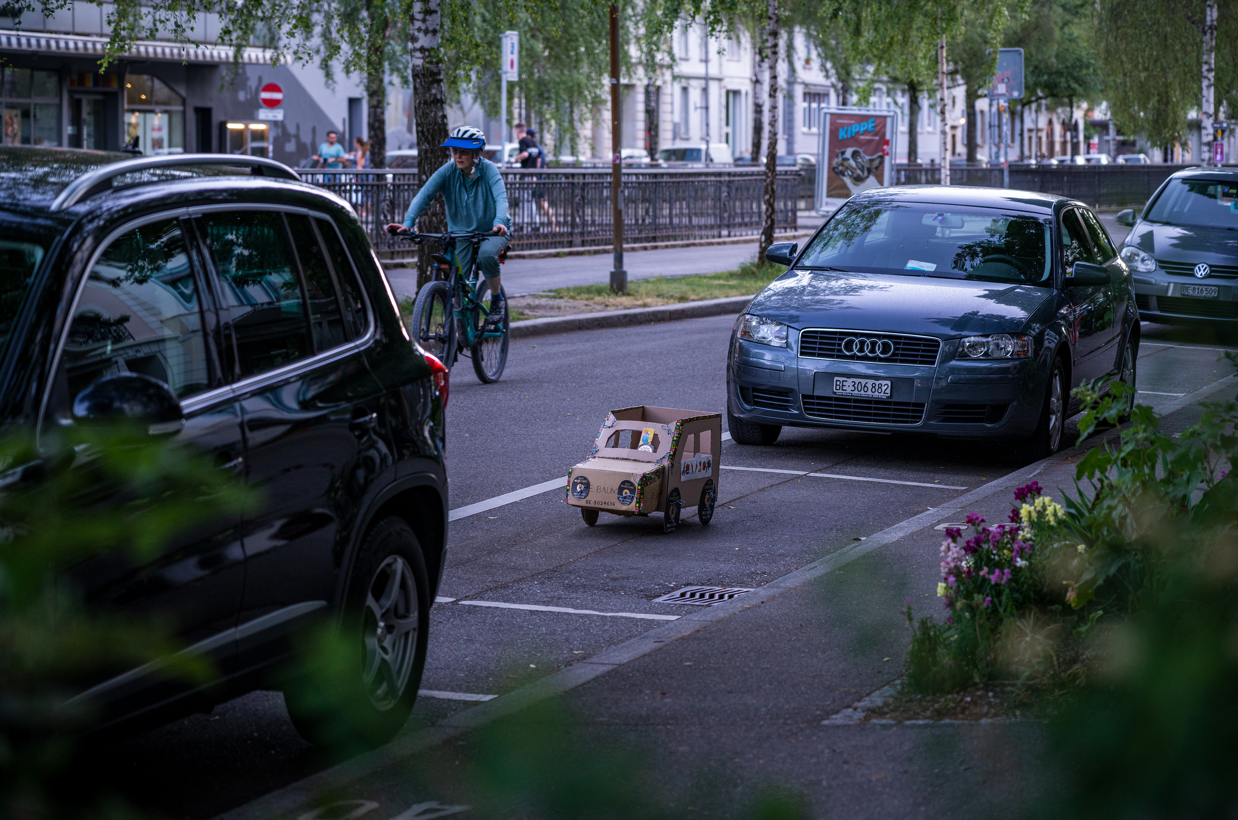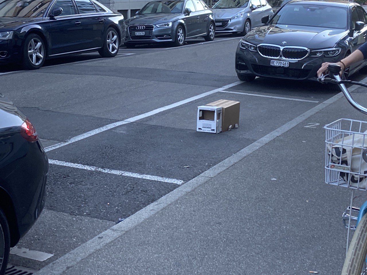 Diese parkieren wir dann auf freien Parkplätzen in der Stadt.